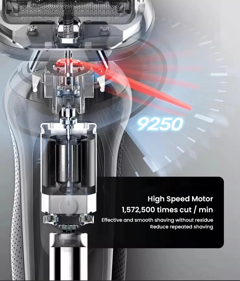 2. Intelligent sensing technology, sensing beard density 2250 times per second, adjusting motor power accordingly for smoother shaving